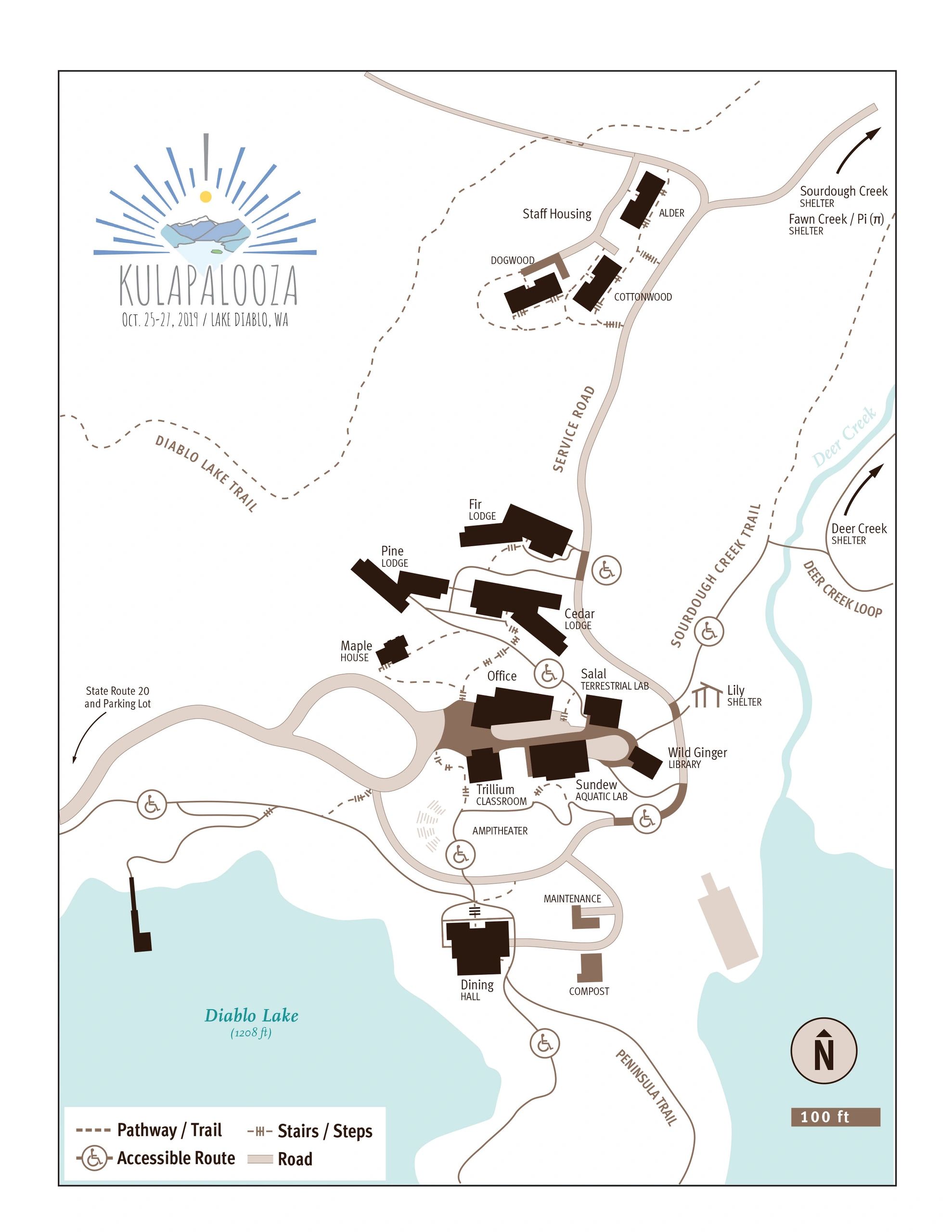 We’ll spend the weekend basking in the scenic beauty of the North Cascade Environmental Learning Center, a sustainable venue located in the North Cascades National Park. Tucked between the shores of Lake Diablo and Sourdough Mountain, this forested land is a treasure trove for adventurers that want to build new skills, explore their passions and make new friends.